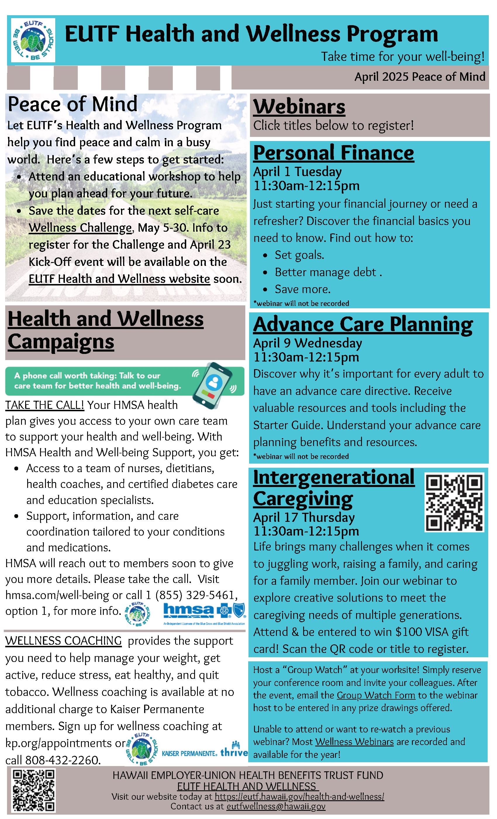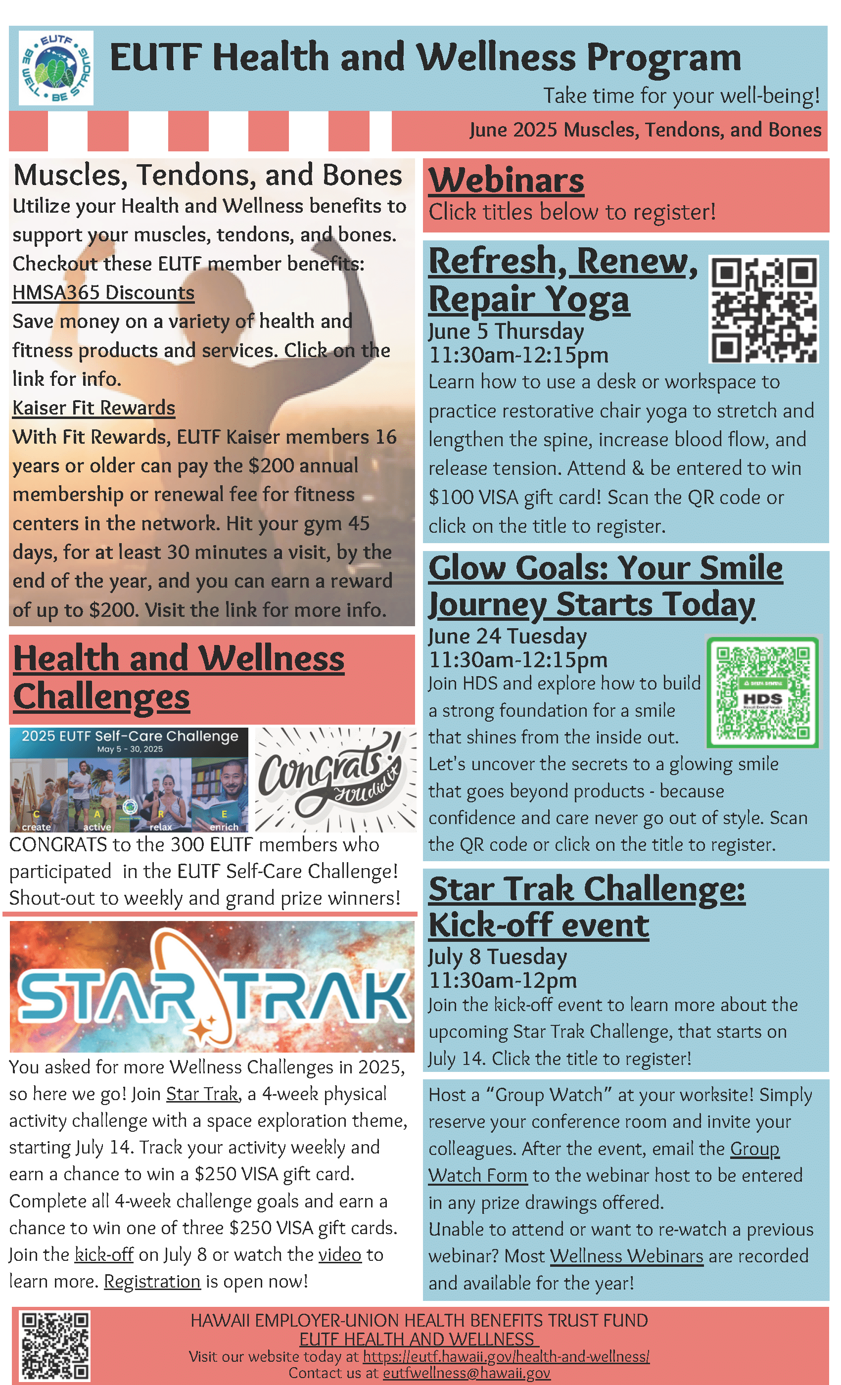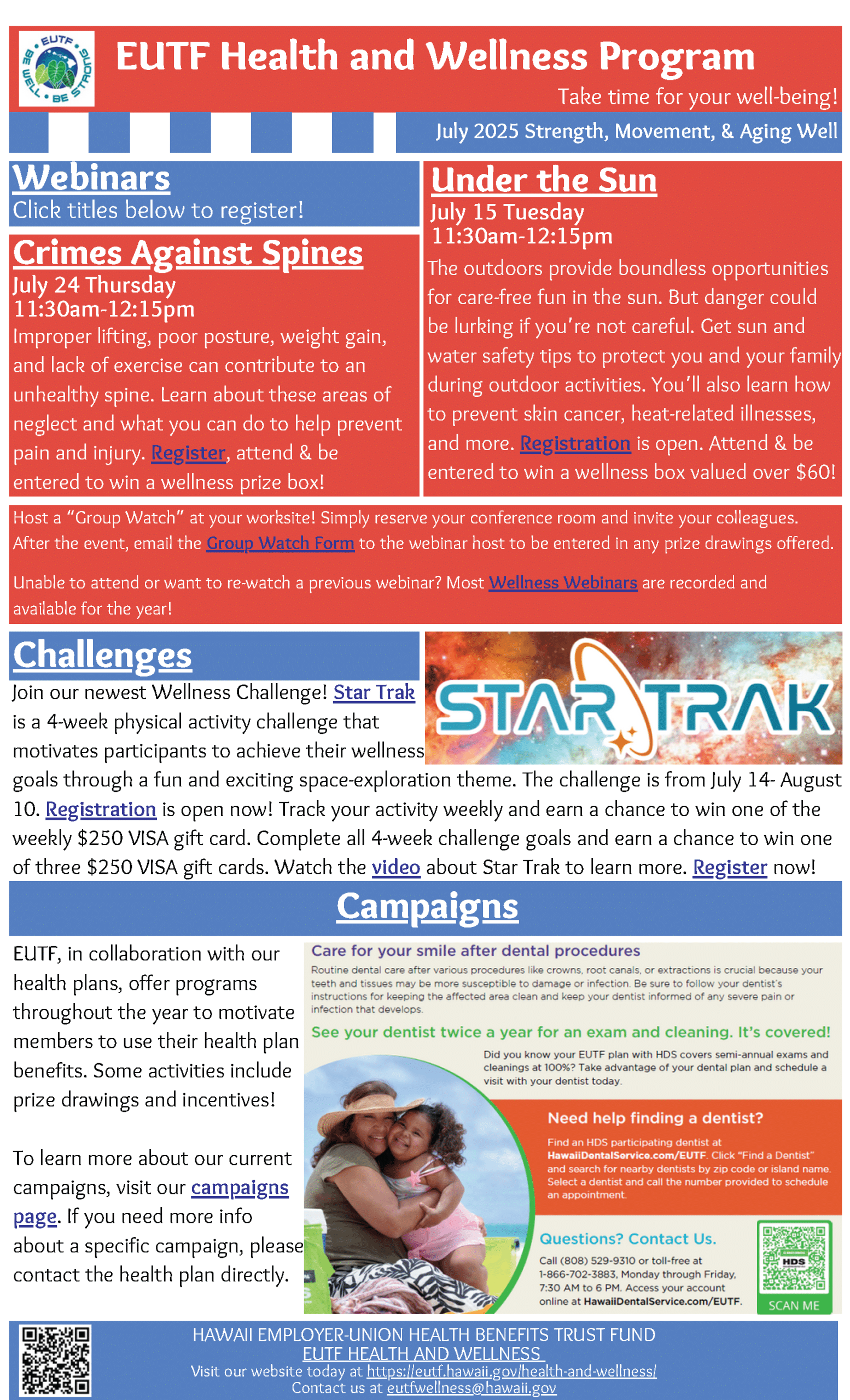 The following health plan benefit information is provided to employer and union groups to support the implementation of worksite wellness programs.